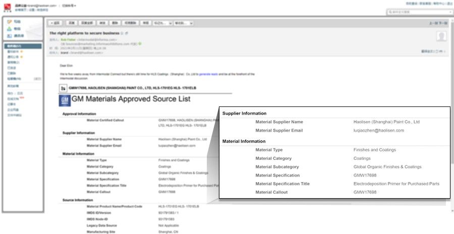 彼時,一份E-mail從大洋彼岸的美國底特律跨越萬里傳送到中國上海。E-mail的發(fā)送者來自美國GM總部,收件人是浩力森涂料。