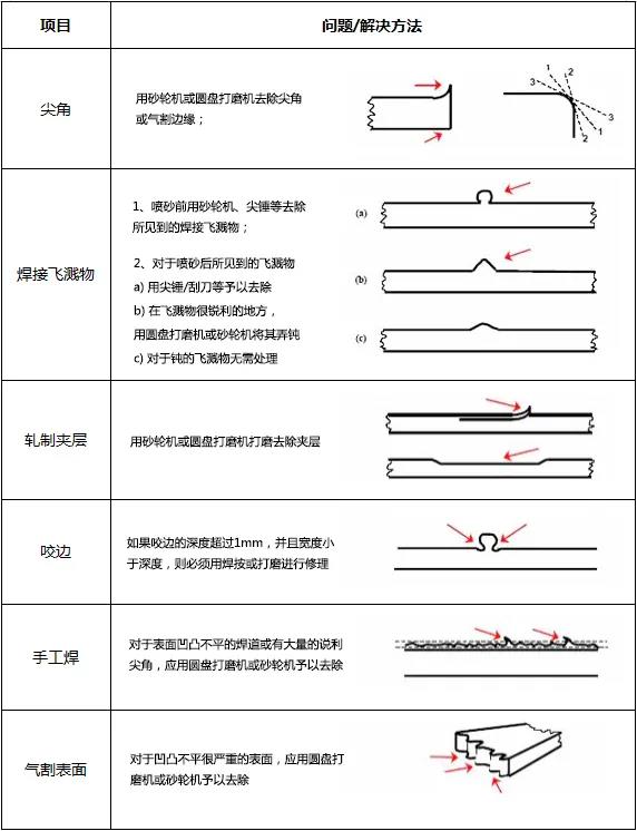 01結構處理:對于底材本身須進行一定的處理,如銳邊打磨、飛濺物去除、焊孔補焊及磨平等等。