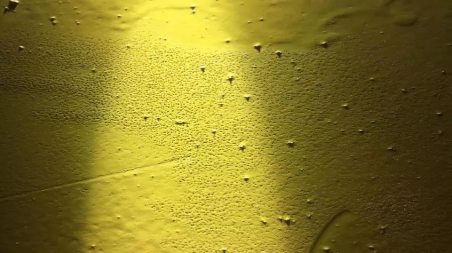 01溶劑清洗:除去表面油脂,通過溶解和稀釋表面污染物來清潔金屬表面。溶劑清洗的分類:酸性清洗、堿性清洗、中性清洗、溶劑型清洗。如圖,在有油脂的工件上施工后,會造成涂層表面的早期失效。