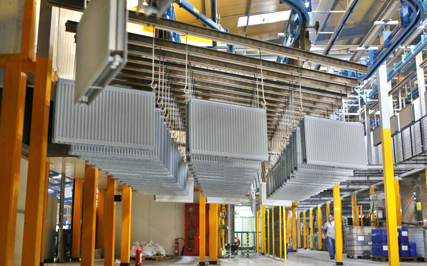 待電泳工件的大小與掛件數(shù)量是確定分布的前提。工件絕不能互相靠得太近,更不能互相遮蓋。在保證導(dǎo)電性的前提下,要讓待電泳工件表面電流分布盡量均勻,氣體排出暢通,電泳液在工件內(nèi)沒有存留,可以方便地排出。保證工件在前處理及泳后噴淋室的噴淋區(qū)域之內(nèi)能夠進(jìn)行有效的噴淋。另外在設(shè)置工件分布時要考慮作業(yè)人員裝掛、取卸方便。