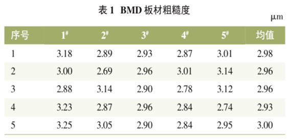 重卡車架采用水洗拋丸板,按Q/JQ16427《BMD板材電泳涂裝技術(shù)要求》,BMD 板材外觀不應(yīng)有影響電泳涂裝后的外觀質(zhì)量缺陷,不應(yīng)有影響漆膜附著力的氧化膜,表面粗糙度 Ra(0.8mm測(cè)長(zhǎng))要求均值3.0μm,最大值<3.5μm,涂油量5g/㎡?,F(xiàn)場(chǎng)對(duì)BMD板材進(jìn)行外觀檢測(cè),其中粗糙度Ra檢測(cè)數(shù)據(jù)見(jiàn)表1。