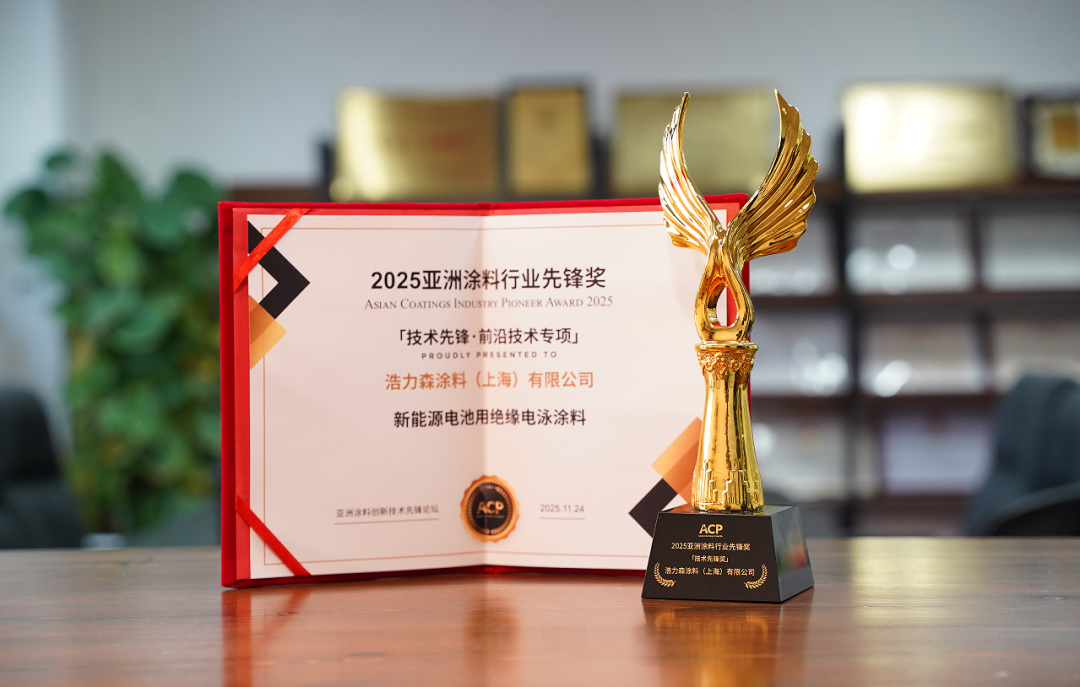 憑借“新能源電池用絕緣電泳涂料”的卓越表現(xiàn),浩力森成功斬獲“2025年度亞洲涂料行業(yè)技術(shù)先鋒獎”。該獎項由企業(yè)、高校多領(lǐng)域?qū)<衣?lián)合評審,涵蓋技術(shù)創(chuàng)新、產(chǎn)品研發(fā)、社會責任及環(huán)保實踐等多維度考核,是對浩力森在綠色新材料領(lǐng)域突破貢獻的高度認可。