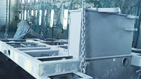 車架采用水洗拋丸后的熱軋鋼板經(jīng)沖壓、鉚接/焊接而成,車架在使用過程中條件較為惡劣,要求產(chǎn)品涂裝后具有較高的防腐蝕性能并具有短期流轉(zhuǎn)防護(hù)的耐候性能。